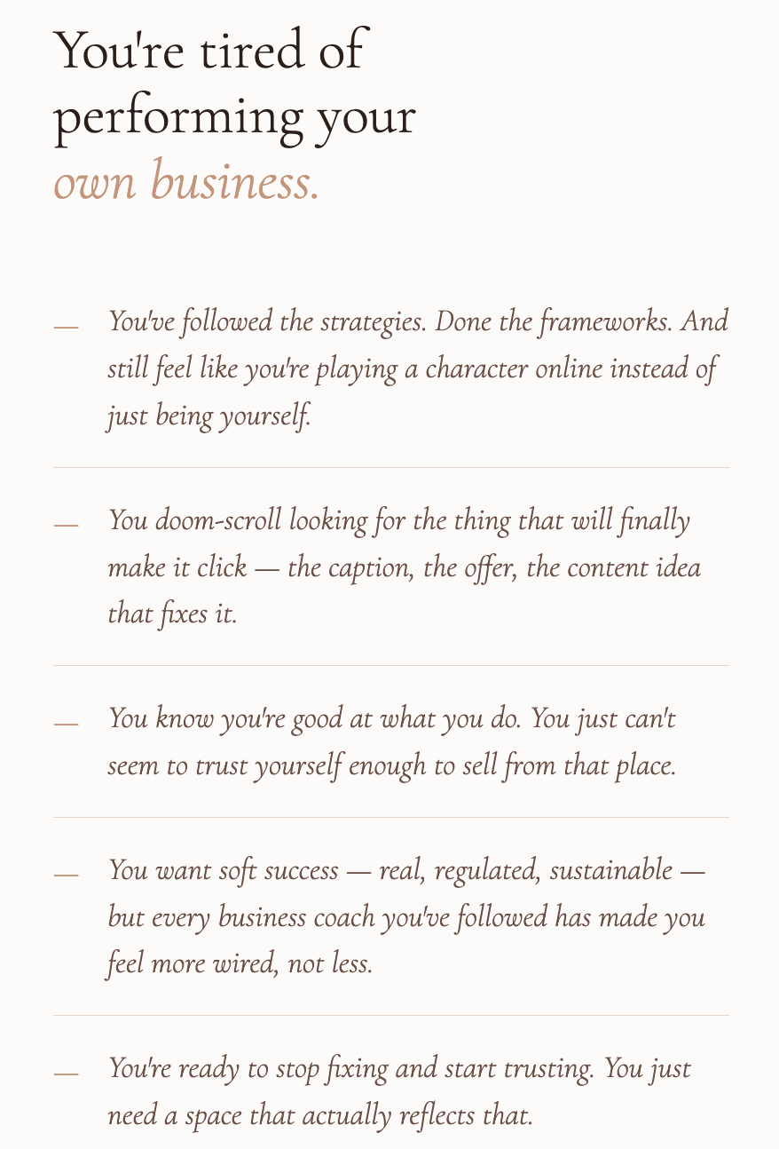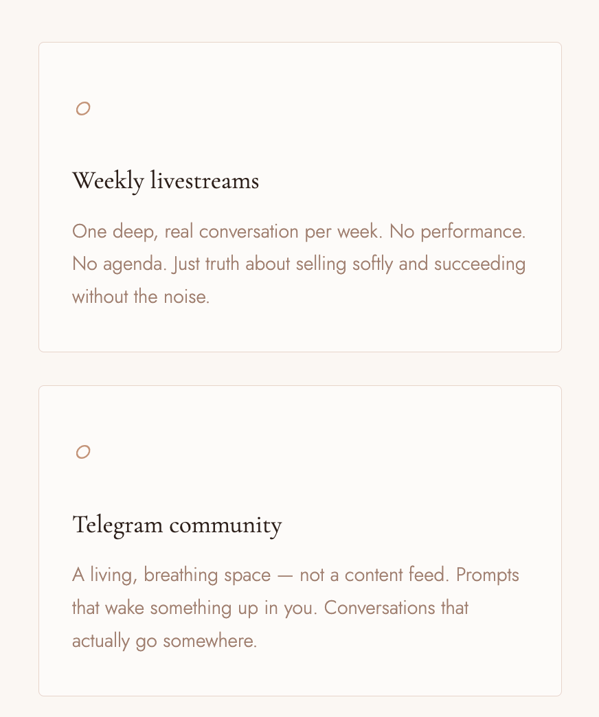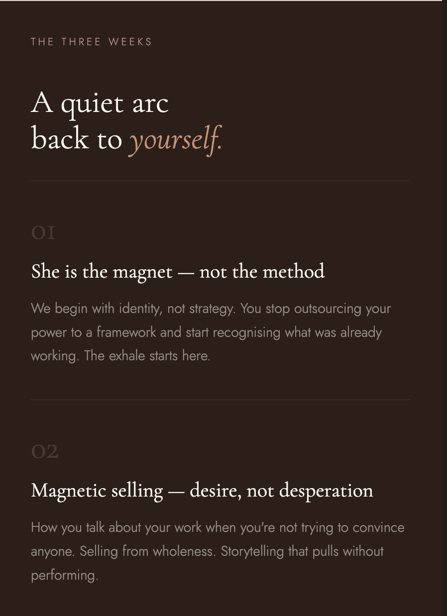 I spent years watching brilliant women — coaches, healers, creatives — shrink themselves into strategies that were never built for them. Chasing. Performing. Convincing. And wondering why it felt so heavy when they were doing everything right.